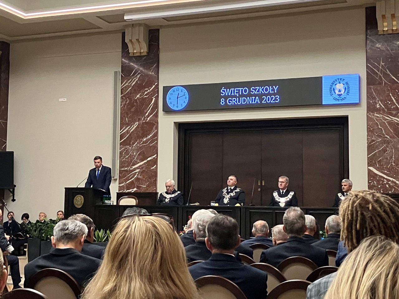 Wśród zaproszonych gości, których podczas podniosłej uroczystości poproszono o zabranie głosu, był Robert Nowicki - prezes spółki ORLEN Neptun, który mówił o znaczeniu Uniwersytetu w kształceniu kadr dla polskiej gospodarki morskiej.